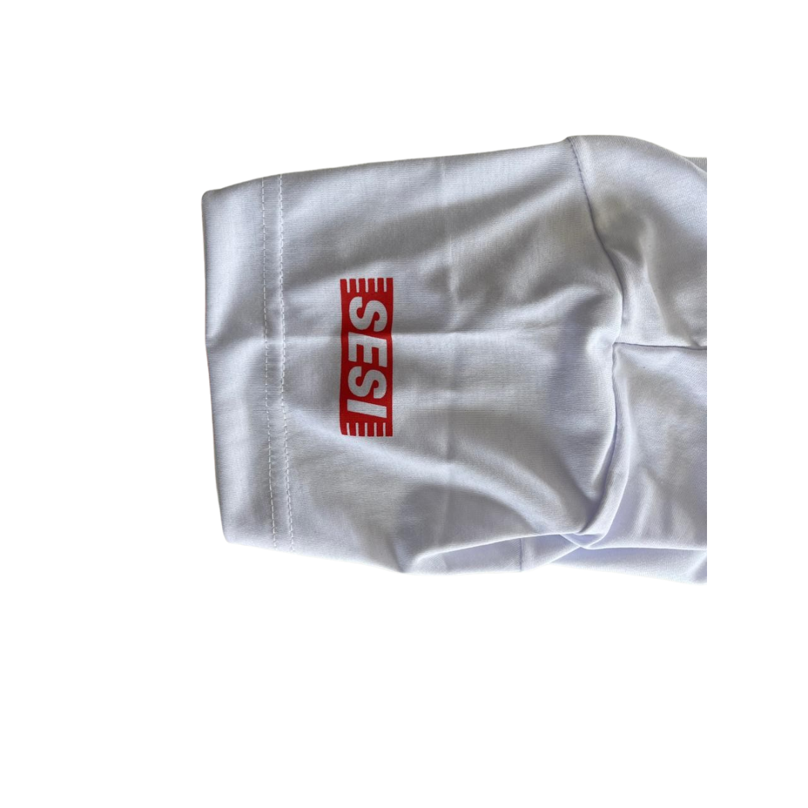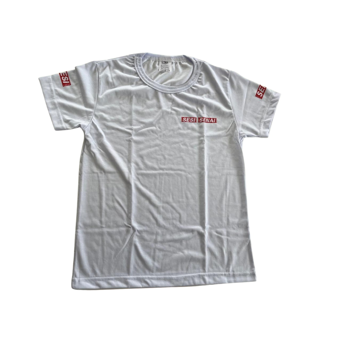 Camiseta SesiSenai malha pv 67% Poliéster x 33 Viscose Cor branca, gola redonda
