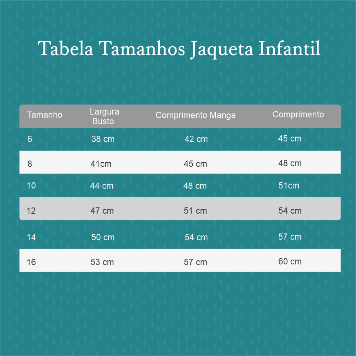 Então, pedimos que nos ajude a criar uma tabela mais precisa, compartilhando as medidas de seus filhos conosco. Juntos, podemos garantir que eles estejam sempre confortáveis, confiantes e bem-vestidos.