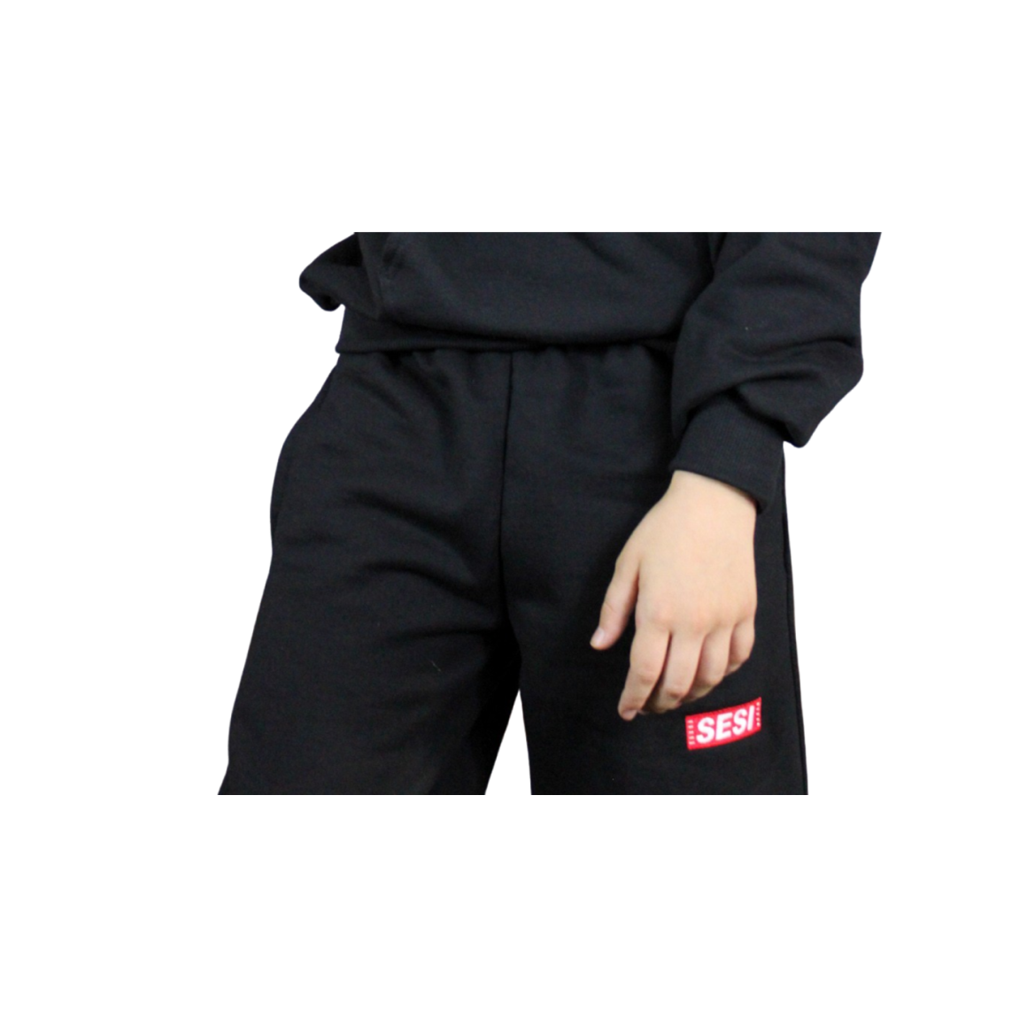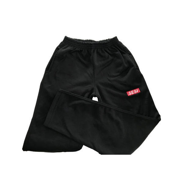 Calça Helanca flanelada SESI 100% Poliéster, Cor Preto com Bolso lateral.
